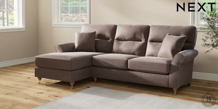7.2.10 Ashford Highback Medium Sofa Chaise - Left Hand Luxe Chenille Mink Brown Castor - Light | Made Click here to use our website with more accessibility support, for example screen readers