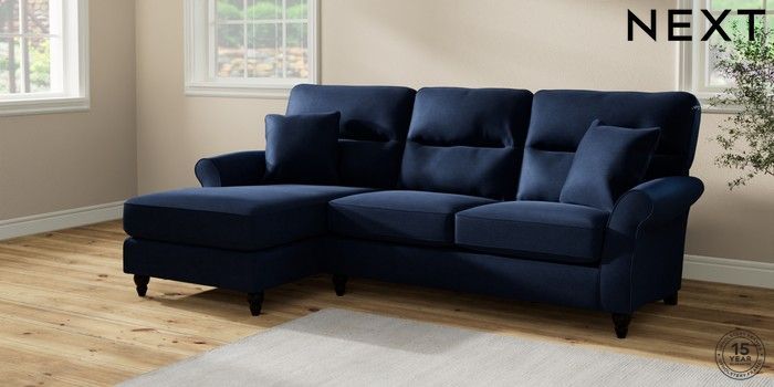 7.2.10 Ashford Highback Medium Sofa Chaise - Left Hand Luxe Chenille Navy Blue Low Turned - Dark | Made Click here to use our website with more accessibility support, for example screen readers