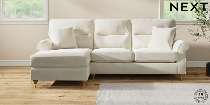 7.2.10 Ashford Highback Medium Sofa Chaise - Left Hand Luxe Chenille Oyster Castor - Light | Made Click here to use our website with more accessibility support, for example screen readers