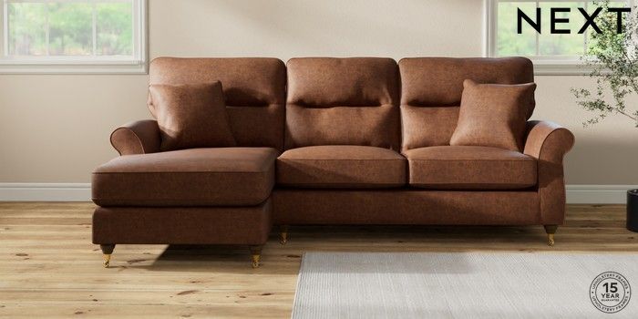 7.2.10 Ashford Highback Medium Sofa Chaise - Left Hand Monza Faux Leather Easy Clean Chestnut Brown Castor - Mid | Made Click here to use our website with more accessibility support, for example screen readers