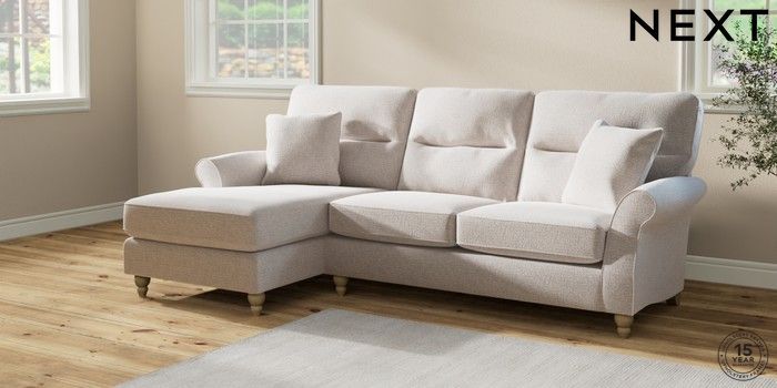 7.2.10 Ashford Highback Medium Sofa Chaise - Left Hand Multi Weave Oyster Low Turned - Light | Made Click here to use our website with more accessibility support, for example screen readers