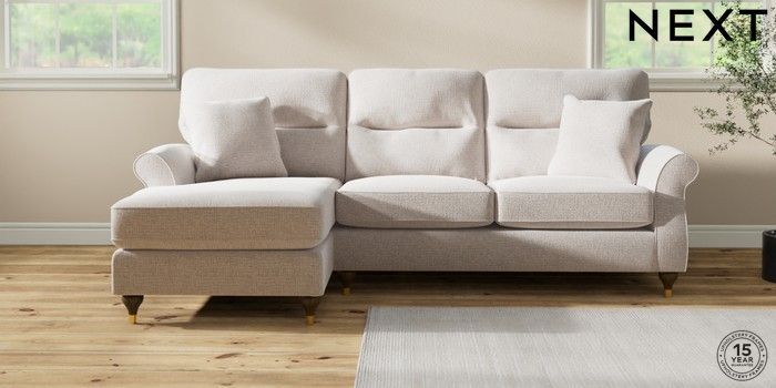 7.2.10 Ashford Highback Medium Sofa Chaise - Left Hand Multi Weave Oyster Modern Turned Metal Cap - Mid | Made Click here to use our website with more accessibility support, for example screen readers