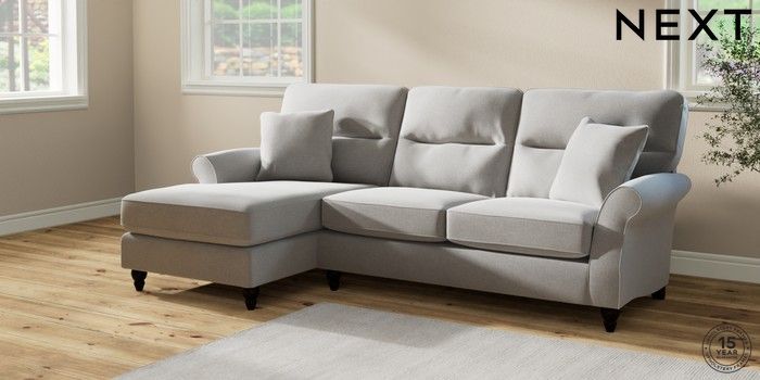 7.2.10 Ashford Highback Medium Sofa Chaise - Left Hand Natural Mix Light Grey Low Turned - Dark | Made Click here to use our website with more accessibility support, for example screen readers
