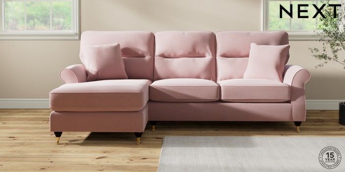 7.2.10 Ashford Highback Medium Sofa Chaise - Left Hand Natural Mix Light Rose Pink Castor - Dark | Made Click here to use our website with more accessibility support, for example screen readers