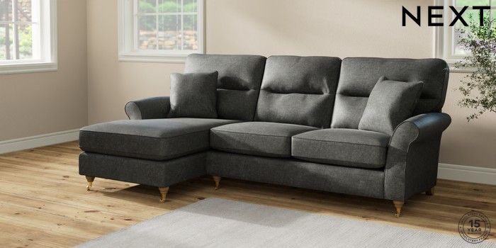 7.2.10 Ashford Highback Medium Sofa Chaise - Left Hand Plush Chenille Dark Grey Castor - Light | Made Click here to use our website with more accessibility support, for example screen readers