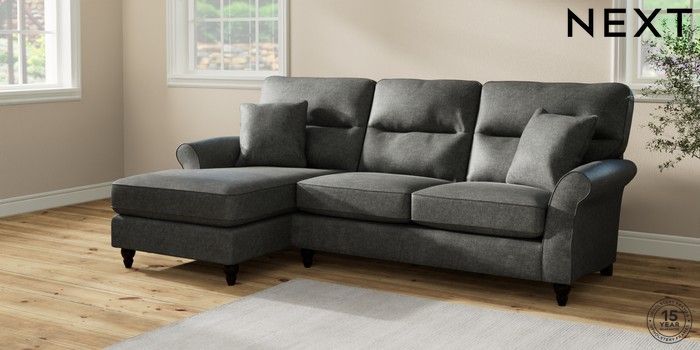 7.2.10 Ashford Highback Medium Sofa Chaise - Left Hand Plush Chenille Dark Grey Low Turned - Dark | Made Click here to use our website with more accessibility support, for example screen readers