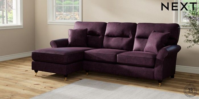 7.2.10 Ashford Highback Medium Sofa Chaise - Left Hand Plush Chenille Dark Plum Purple Castor - Dark | Made Click here to use our website with more accessibility support, for example screen readers