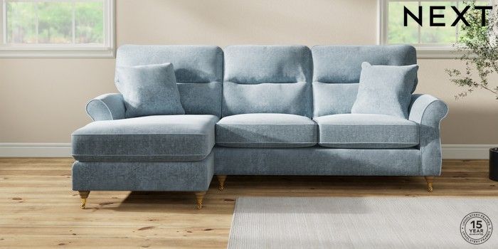 7.2.10 Ashford Highback Medium Sofa Chaise - Left Hand Plush Chenille Light Blue Castor - Light | Made Click here to use our website with more accessibility support, for example screen readers