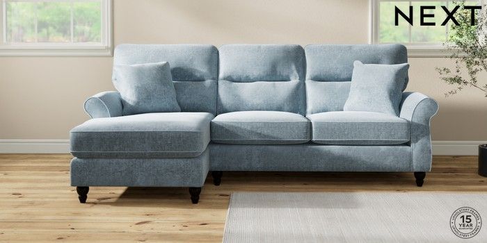 7.2.10 Ashford Highback Medium Sofa Chaise - Left Hand Plush Chenille Light Blue Low Turned - Dark | Made Click here to use our website with more accessibility support, for example screen readers