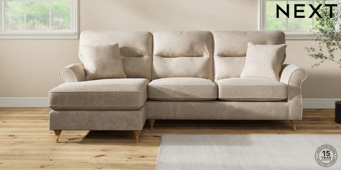 7.2.10 Ashford Highback Medium Sofa Chaise - Left Hand Plush Chenille Light Natural Castor - Light | Made Click here to use our website with more accessibility support, for example screen readers
