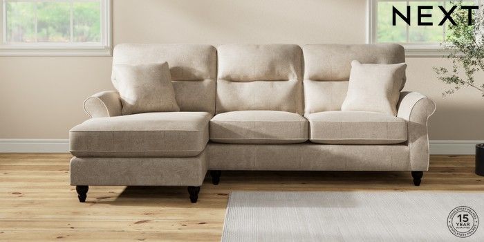 7.2.10 Ashford Highback Medium Sofa Chaise - Left Hand Plush Chenille Light Natural Low Turned - Dark | Made Click here to use our website with more accessibility support, for example screen readers
