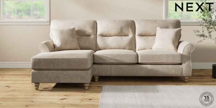 7.2.10 Ashford Highback Medium Sofa Chaise - Left Hand Plush Chenille Light Natural Low Turned - Light | Made Click here to use our website with more accessibility support, for example screen readers