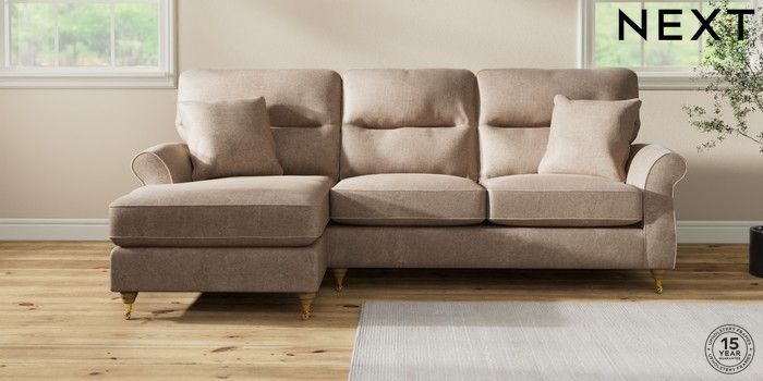 7.2.10 Ashford Highback Medium Sofa Chaise - Left Hand Plush Chenille Mid Natural Castor - Light | Made Click here to use our website with more accessibility support, for example screen readers