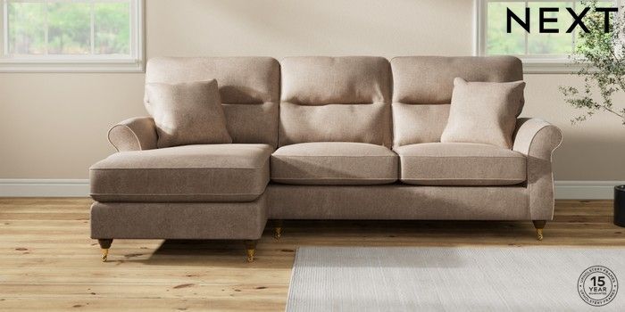 7.2.10 Ashford Highback Medium Sofa Chaise - Left Hand Plush Chenille Mid Natural Castor - Mid | Made Click here to use our website with more accessibility support, for example screen readers