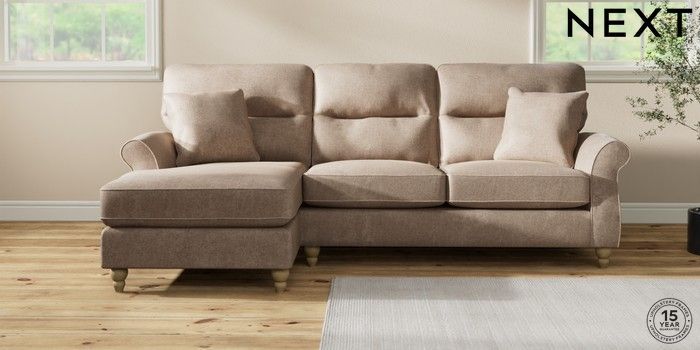 7.2.10 Ashford Highback Medium Sofa Chaise - Left Hand Plush Chenille Mid Natural Low Turned - Light | Made Click here to use our website with more accessibility support, for example screen readers