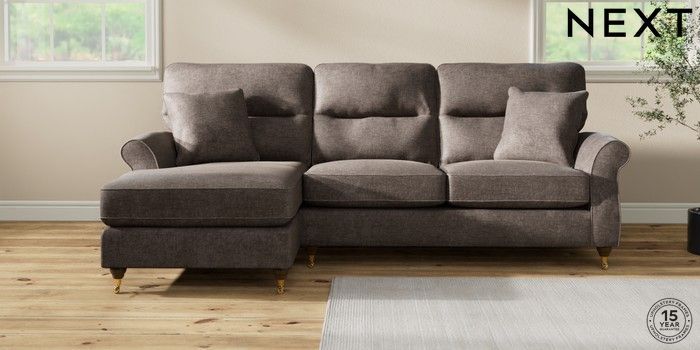 7.2.10 Ashford Highback Medium Sofa Chaise - Left Hand Plush Chenille Mink Brown Castor - Mid | Made Click here to use our website with more accessibility support, for example screen readers