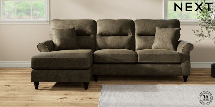 7.2.10 Ashford Highback Medium Sofa Chaise - Left Hand Plush Chenille Moss Green Low Turned - Dark | Made Click here to use our website with more accessibility support, for example screen readers