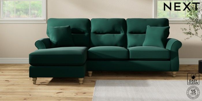 7.2.10 Ashford Highback Medium Sofa Chaise - Left Hand Plush Velvet Easy Clean Bottle Green Low Turned - Light | Made Click here to use our website with more accessibility support, for example screen readers