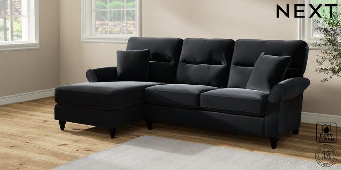 7.2.10 Ashford Highback Medium Sofa Chaise - Left Hand Plush Velvet Easy Clean Charcoal Grey Low Turned - Dark | Made Click here to use our website with more accessibility support, for example screen readers
