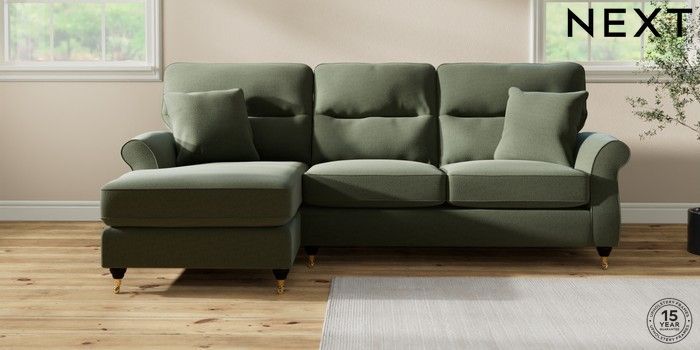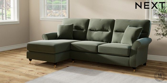 7.2.10 Ashford Highback Medium Sofa Chaise - Left Hand Relaxed Linen Look Dark Green Castor - Dark | Made Click here to use our website with more accessibility support, for example screen readers