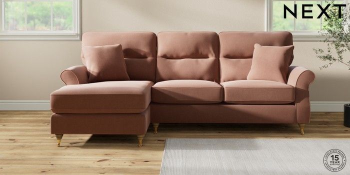 7.2.10 Ashford Highback Medium Sofa Chaise - Left Hand Relaxed Linen Look Light Rust Brown Castor - Light | Made Click here to use our website with more accessibility support, for example screen readers