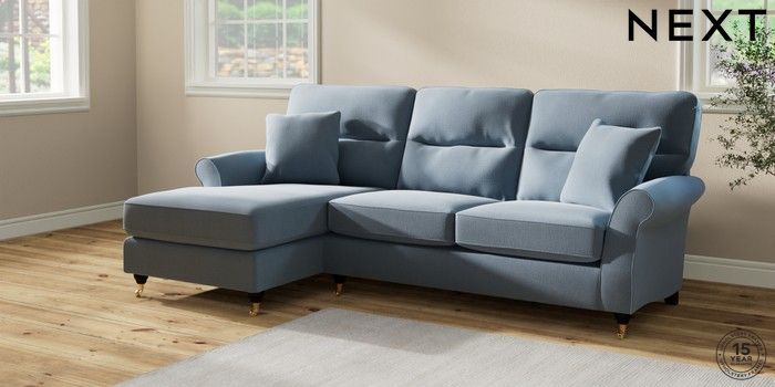 7.2.10 Ashford Highback Medium Sofa Chaise - Left Hand Relaxed Linen Look Mid Blue Castor - Dark | Made Click here to use our website with more accessibility support, for example screen readers