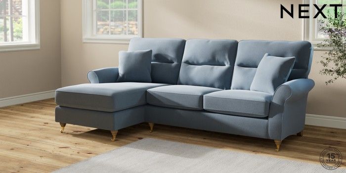 7.2.10 Ashford Highback Medium Sofa Chaise - Left Hand Relaxed Linen Look Mid Blue Castor - Light | Made Click here to use our website with more accessibility support, for example screen readers