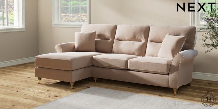 7.2.10 Ashford Highback Medium Sofa Chaise - Left Hand Relaxed Linen Look Mid Natural Castor - Light | Made Click here to use our website with more accessibility support, for example screen readers
