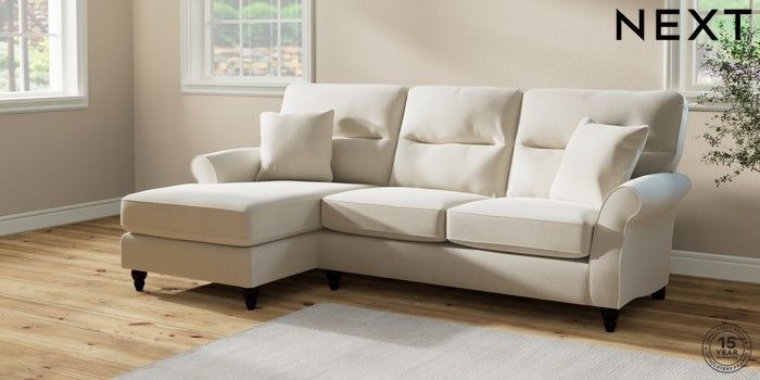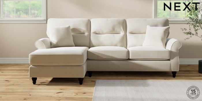 7.2.10 Ashford Highback Medium Sofa Chaise - Left Hand Relaxed Linen Look Oyster Low Turned - Dark | Made Click here to use our website with more accessibility support, for example screen readers