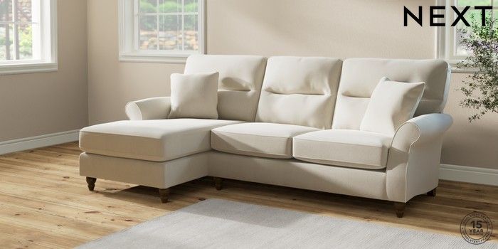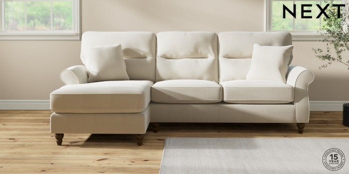 7.2.10 Ashford Highback Medium Sofa Chaise - Left Hand Relaxed Linen Look Oyster Low Turned - Mid | Made Click here to use our website with more accessibility support, for example screen readers