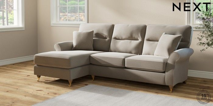 7.2.10 Ashford Highback Medium Sofa Chaise - Left Hand Ripple Chenille Light Natural Castor - Light | Made Click here to use our website with more accessibility support, for example screen readers
