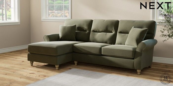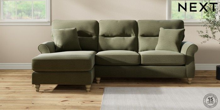 7.2.10 Ashford Highback Medium Sofa Chaise - Left Hand Ripple Chenille Mid Moss Green Low Turned - Light | Made Click here to use our website with more accessibility support, for example screen readers