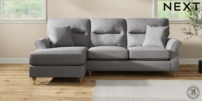 7.2.10 Ashford Highback Medium Sofa Chaise - Left Hand Studio Chenille Mid Grey Castor - Light | Made Click here to use our website with more accessibility support, for example screen readers