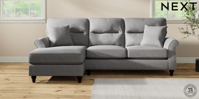 7.2.10 Ashford Highback Medium Sofa Chaise - Left Hand Studio Chenille Mid Grey Low Turned - Dark | Made Click here to use our website with more accessibility support, for example screen readers