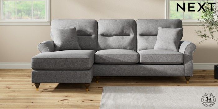 7.2.10 Ashford Highback Medium Sofa Chaise - Left Hand Studio Chenille Mid Grey Modern Turned Metal Cap - Mid | Made Click here to use our website with more accessibility support, for example screen readers