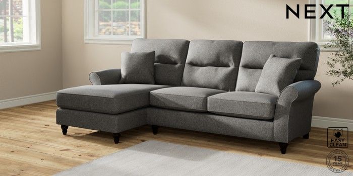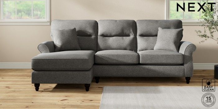 7.2.10 Ashford Highback Medium Sofa Chaise - Left Hand Tweedy Blend Easy Clean Dark Grey Low Turned - Dark | Made Click here to use our website with more accessibility support, for example screen readers