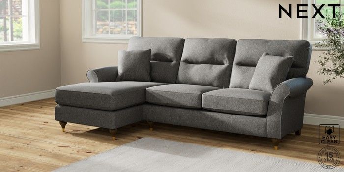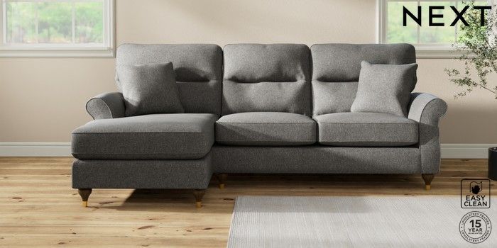7.2.10 Ashford Highback Medium Sofa Chaise - Left Hand Tweedy Blend Easy Clean Dark Grey Modern Turned Metal Cap - Mid | Made Click here to use our website with more accessibility support, for example screen readers