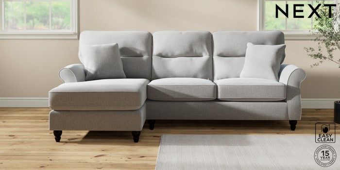 7.2.10 Ashford Highback Medium Sofa Chaise - Left Hand Tweedy Blend Easy Clean Light Silver Grey Low Turned - Dark | Made Click here to use our website with more accessibility support, for example screen readers