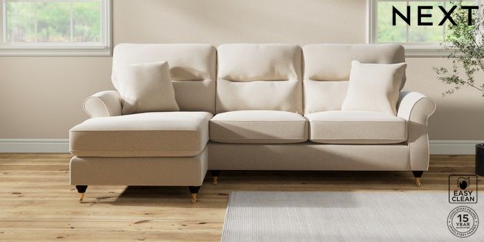 7.2.10 Ashford Highback Medium Sofa Chaise - Left Hand Tweedy Blend Easy Clean Oyster Castor - Dark | Made Click here to use our website with more accessibility support, for example screen readers