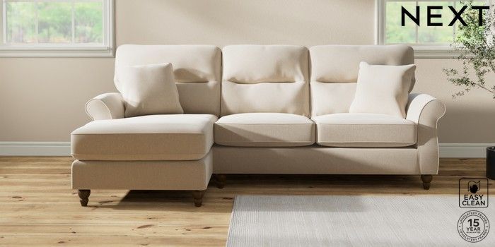 7.2.10 Ashford Highback Medium Sofa Chaise - Left Hand Tweedy Blend Easy Clean Oyster Low Turned - Mid | Made Click here to use our website with more accessibility support, for example screen readers