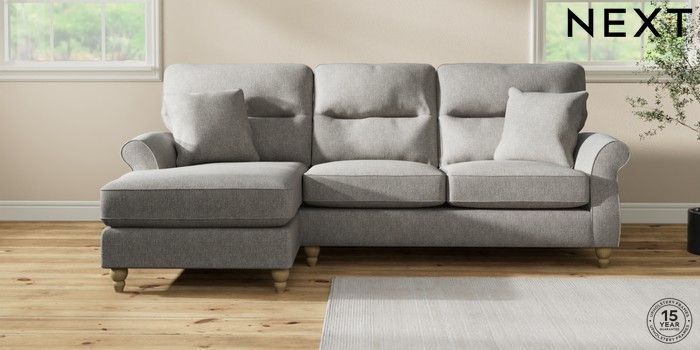 7.2.10 Ashford Highback Medium Sofa Chaise - Left Hand Tweedy Chenille Mid Grey Low Turned - Light | Made Click here to use our website with more accessibility support, for example screen readers