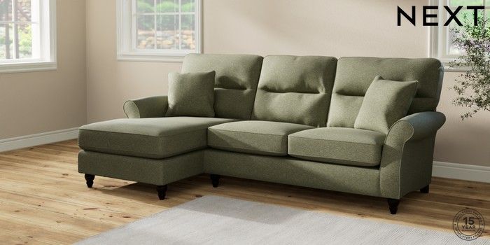 7.2.10 Ashford Highback Medium Sofa Chaise - Left Hand Tweedy Chenille Mid Moss Green Low Turned - Dark | Made Click here to use our website with more accessibility support, for example screen readers