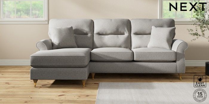 7.2.10 Ashford Highback Medium Sofa Chaise - Left Hand Woven Chenille Easy Clean Light Grey Castor - Light | Made Click here to use our website with more accessibility support, for example screen readers