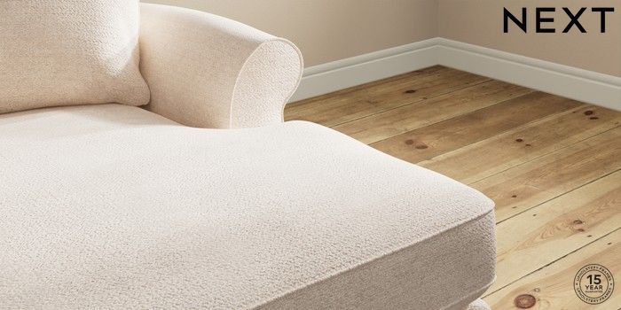 7.2.10 Ashford Highback Medium Sofa Chaise - Right Hand Boucle Chenille Oyster Modern Turned Metal Cap - Mid | Made Click here to use our website with more accessibility support, for example screen readers