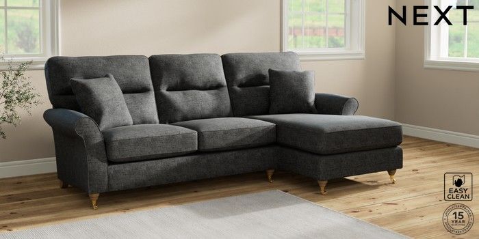 7.2.10 Ashford Highback Medium Sofa Chaise - Right Hand Boucle Weave Easy Clean Charcoal Grey Castor - Light | Made Click here to use our website with more accessibility support, for example screen readers