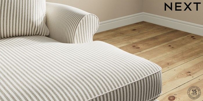 7.2.10 Ashford Highback Medium Sofa Chaise - Right Hand Chenille Stripe Moss Green Low Turned - Dark | Made Click here to use our website with more accessibility support, for example screen readers