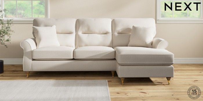 7.2.10 Ashford Highback Medium Sofa Chaise - Right Hand Chenille Stripe Natural Castor - Light | Made Click here to use our website with more accessibility support, for example screen readers