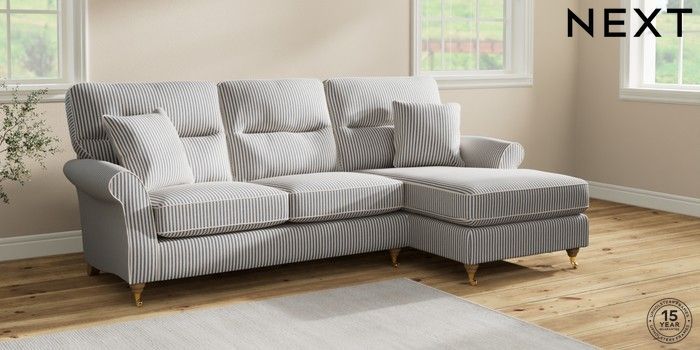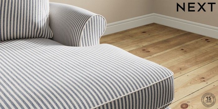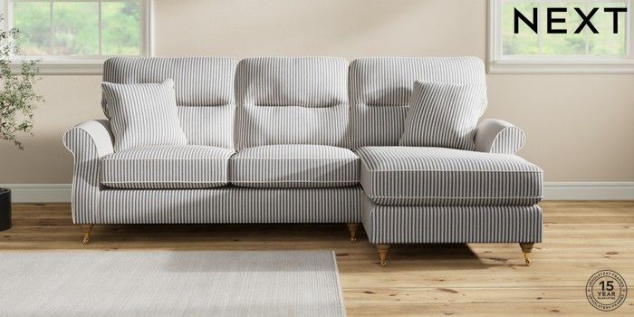 7.2.10 Ashford Highback Medium Sofa Chaise - Right Hand Chenille Stripe Slate Blue Castor - Light | Made Click here to use our website with more accessibility support, for example screen readers