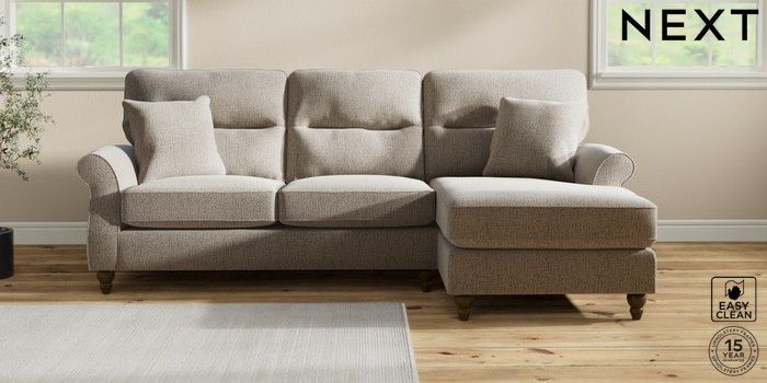 7.2.10 Ashford Highback Medium Sofa Chaise - Right Hand Chunky Boucle Easy Clean Dove Low Turned - Mid | Made Click here to use our website with more accessibility support, for example screen readers