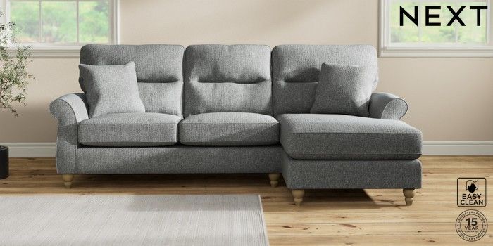 7.2.10 Ashford Highback Medium Sofa Chaise - Right Hand Chunky Boucle Easy Clean Mid Grey Low Turned - Light | Made Click here to use our website with more accessibility support, for example screen readers